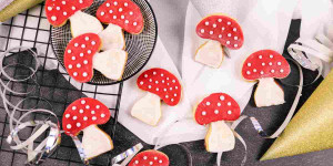 Glückspilze backen für Neujahr, Glücksbringer aus Mürbeteig